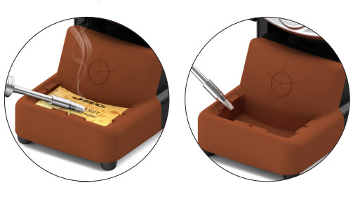 Cuando la herramienta se coloca en el soporte se activan los modos de suspensión e hibernación y se reduce la temperatura, prolongando la vida útil de la punta hasta 5 veces. Tanto el portaherramientas como el colector son fácilmente ajustables.
